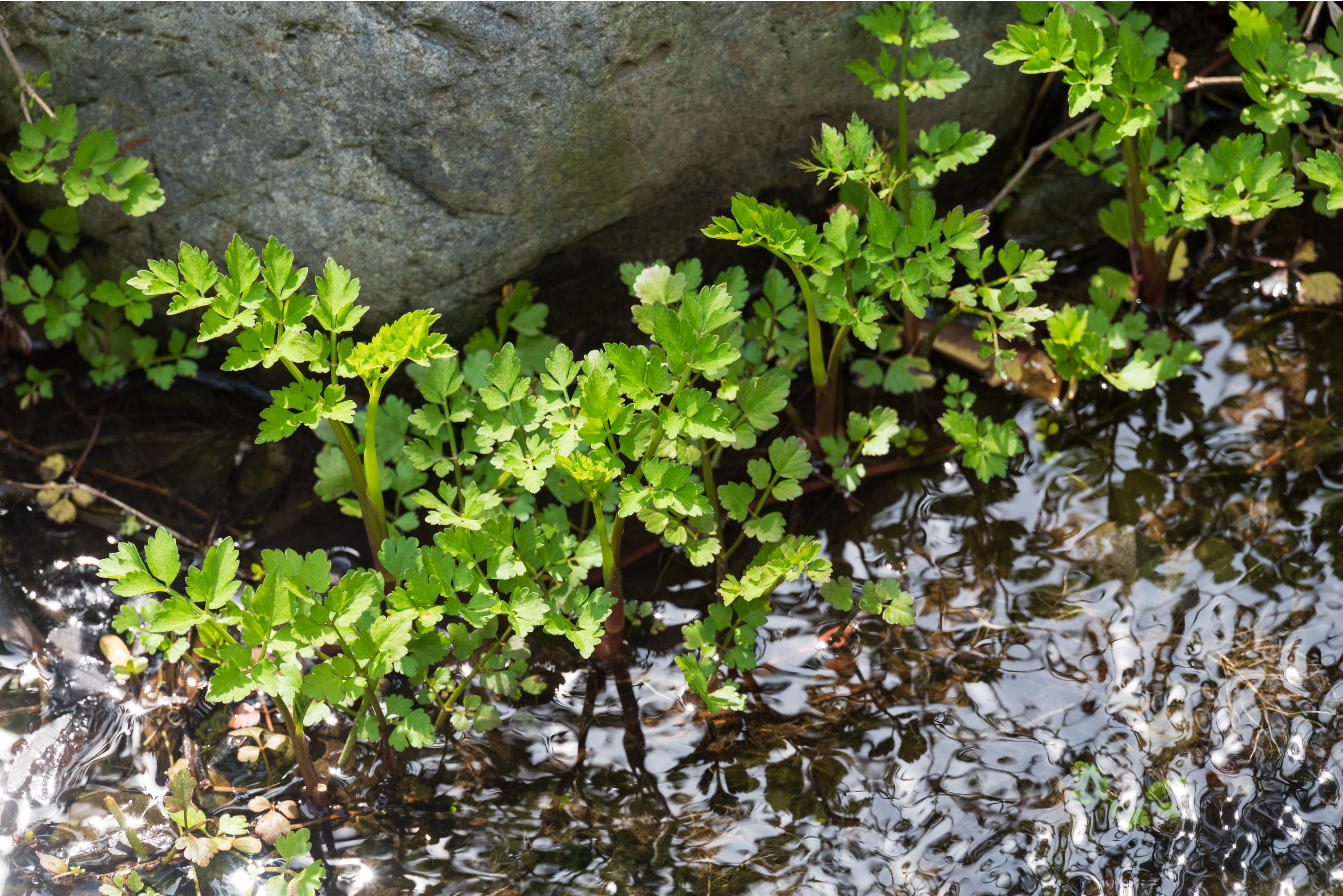 芹は、冬の冷たい水辺でもたくましく育つ植物。